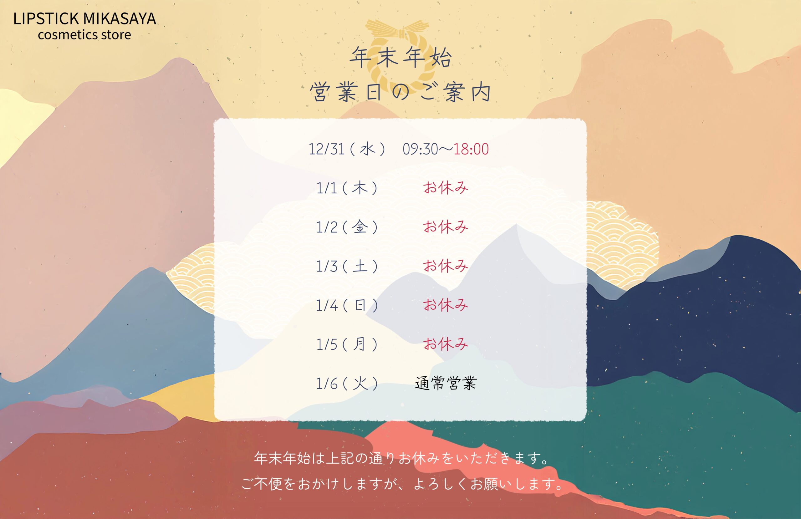 年始の初営業は1月6日(火)からとなります。ご不便をおかけしますが