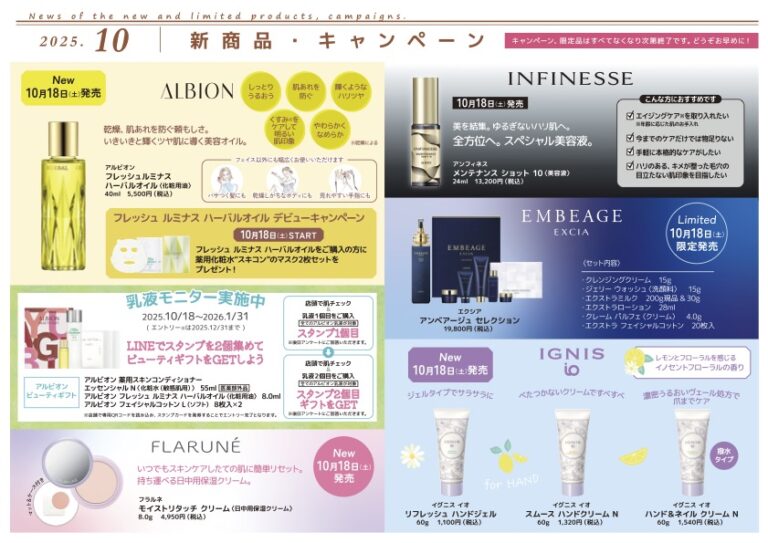 オシャレは指先から✨ 指先まで、憧れの肌へ。コウジ酸、厳選の美容成分配合。ふっくら透明感のある手肌に導くハンドクリーム♡ アルビオンエターナル エンヴィ ハンド〈美白ハンドクリーム〉医薬部外品 有効成分 コウジ酸110g 8,800円(税込)40g 3,850円(税込)香り フローラルウッディムスキー2025年9月18日発売 内側から即効的にボリュームのあるふっくらとした手肌へ💕コウジ酸による美白効果で色ムラ、クスミ解消✨ 手だけでなく爪の補強成分も入っているので二枚爪や爪のトラブル改善にも🎵日中フカフカな手もとに✨ 今 […]